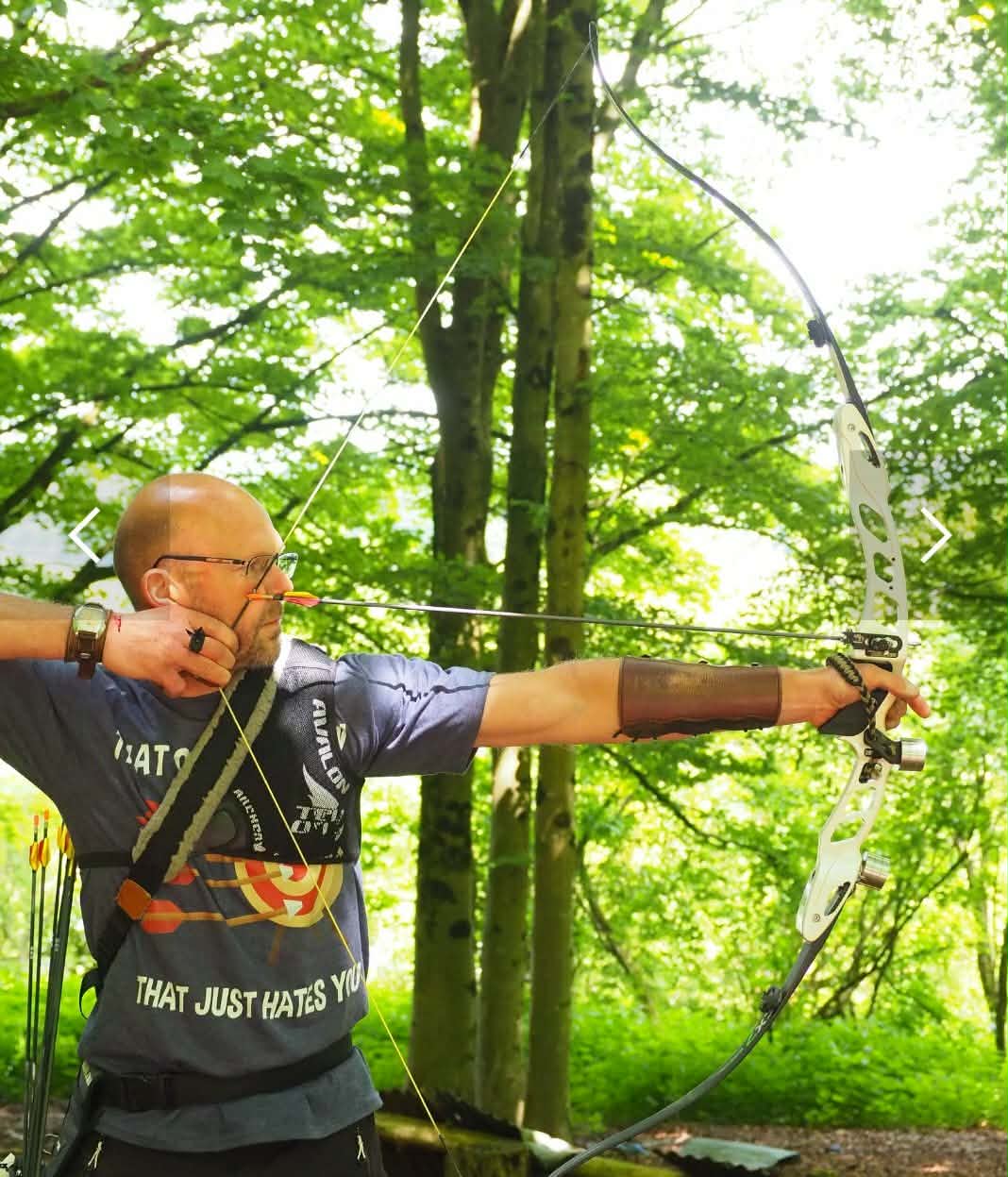 | Equipment: Kinetic Stylized 25" riser, Hoyt grip. WIAWIS CX7 Extreme carbon 40lb limbs, 46lb on fingers. Zniper plunger, 8125 16 strand string, Avalon Classic Barebow Tab. Arrows: MAC Trad wood effect, 32" 100gn point, 4" shield feathers |
